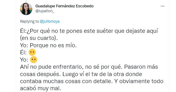 Ahí no pude enfrentarlo, no sé por qué. Pasaron más cosas después. Luego ví el tw de la otra donde contaba muchas cosas con detalle. Y obviamente todo acabó muy mal”.