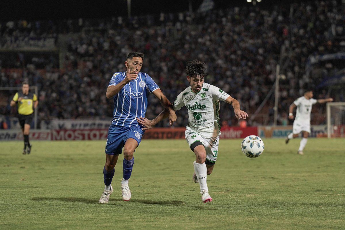 En el comienzo Sarmiento se animó con su posicionamiento y complicó a Godoy Cruz. De hecho el elenco de Junín tuvo una clara para abrir el marcador con remates de Iván Morales, Manuel Mónaco y una clarísima de Joaquín Gho, que tras una pifia del arqueo Franco Petroli, su tiro rasante recorrió cerca de la línea del arco. El control del elenco de Israel Damonte siguió, pero siguió sin puntería.
