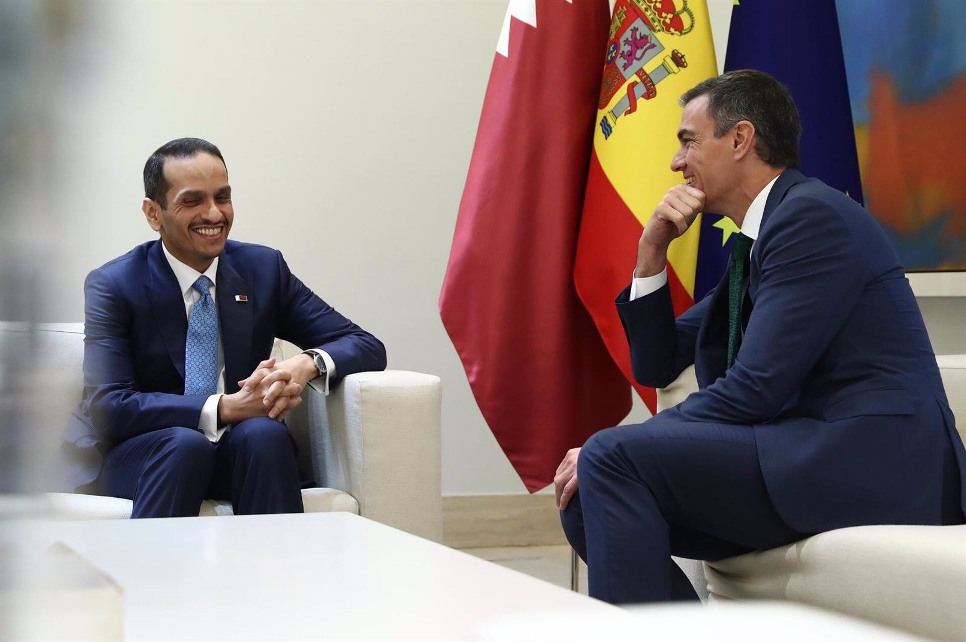 El presidente del Gobierno, Pedro Sánchez, ha recibido este viernes en La Moncloa, al primer ministro y ministro de Asuntos Exteriores de Qatar, Mohammed Bin Al Thani y ha reafirmado el apoyo de España a los esfuerzos diplomáticos realizados por este Estado ante la situación en Oriente Próximo. En este sentido, Sánchez ha abogado por impulsar «un marco de acción euro-árabe» que trabaje en la organización de una Conferencia de Paz con las partes implicadas para aplicar la solución de los dos Estados «apoyando a la Autoridad Palestina como principal alternativa» una vez que finalice el conflicto. Asimismo, ha reiterado la obligación de respetar y defender el derecho internacional, que considera el único garante de un orden internacional basado en reglas. Sánchez y Al Thani se han reunido este viernes en La Moncloa, el primer encuentro entre ambos países fruto del memorando de entendimiento firmado en la visita del presidente Sánchez a Doha el pasdado mes de abril, que pone en marcha la asociación estratégica entre España y Qatar. Según indican desde Moncloa, la visita ha estrechado aún más las relaciones bilaterales, en especial en el comercio y la inversión, pero también en otros como la educación, la cultura y la innovación.